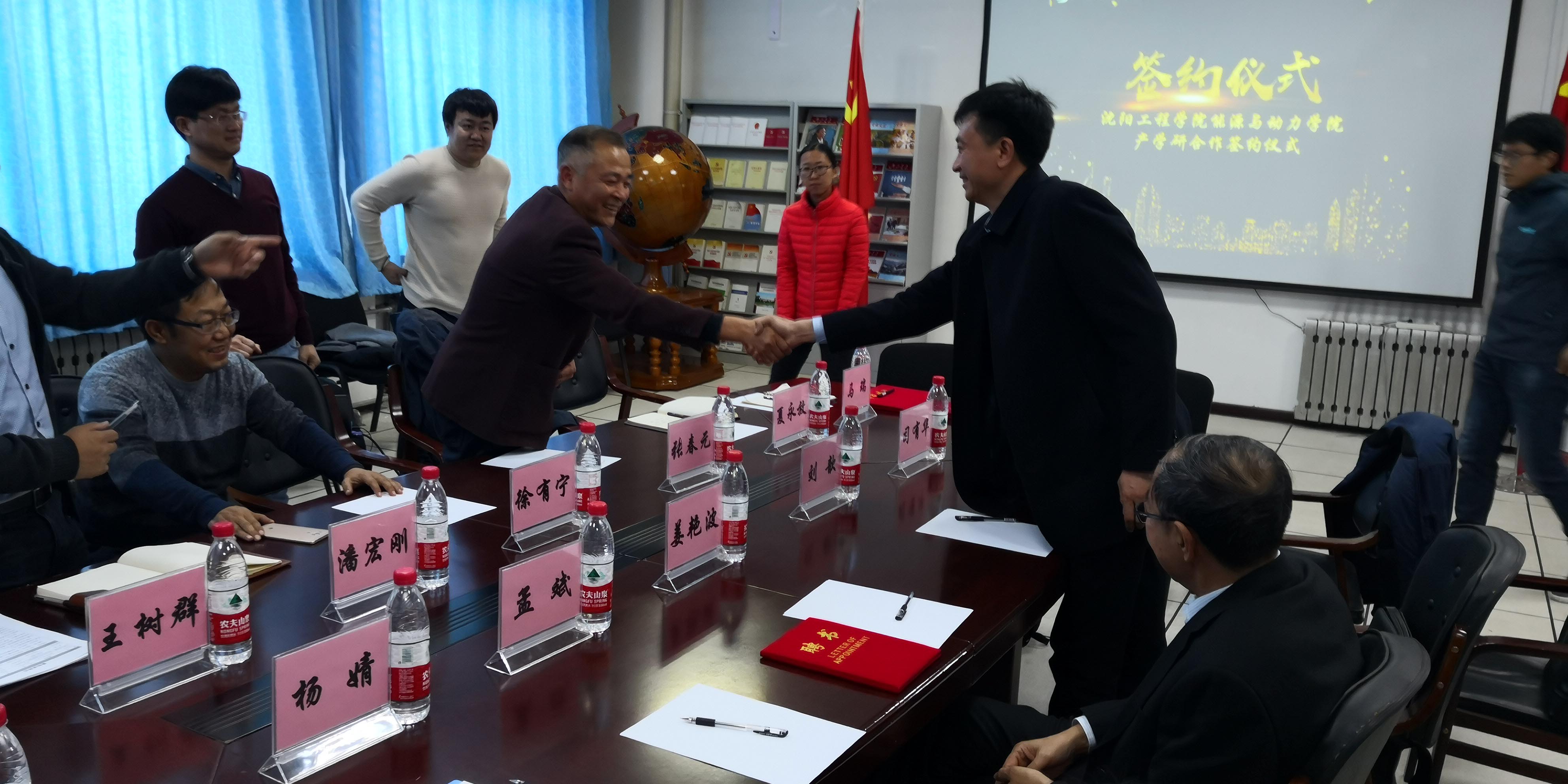 2018年12月6日,沈陽工程學院能源與動力工程專業客座教授聘任儀式暨在與內蒙古恒瑞新能源產學研合作簽約儀式在學院內舉辦。能源與動力學院院長徐有寧教授代表學院聘請我公司研發中心技術總監姜艷波同志為該學院客座教授。同時,沈陽工程學院能源與動力學院書記張春元教授代表學院與我公司董事長劉歆簽訂了校企合作的產學研協議。在儀式上, 我公司提出希望與貴院在可再生能源利用技術、儲能設備、多點智能、微電網等方面開展技術交流與合作。能源與動力學院徐有寧教授也介紹了學院在清潔燃燒、氣體燃燒、耦合發電、動力機械、能效評估和能源規劃及環保領域都有較深的研究基礎,希望能在這些領域開展繼續深化的技術交流和合作。